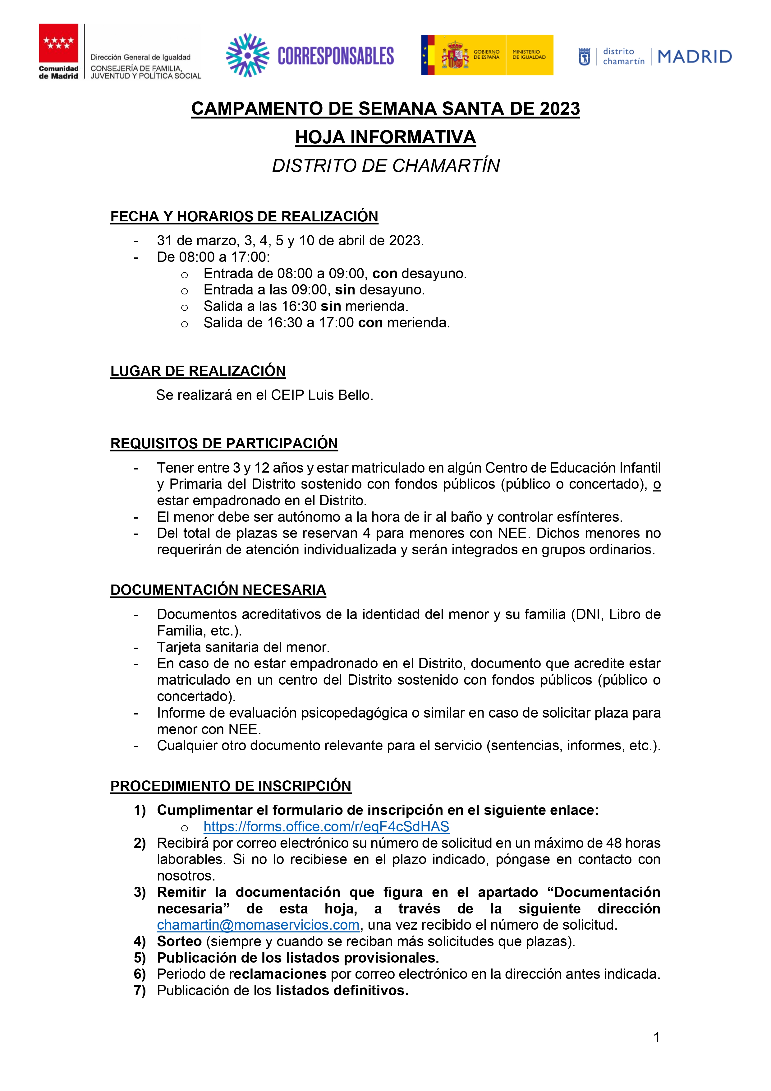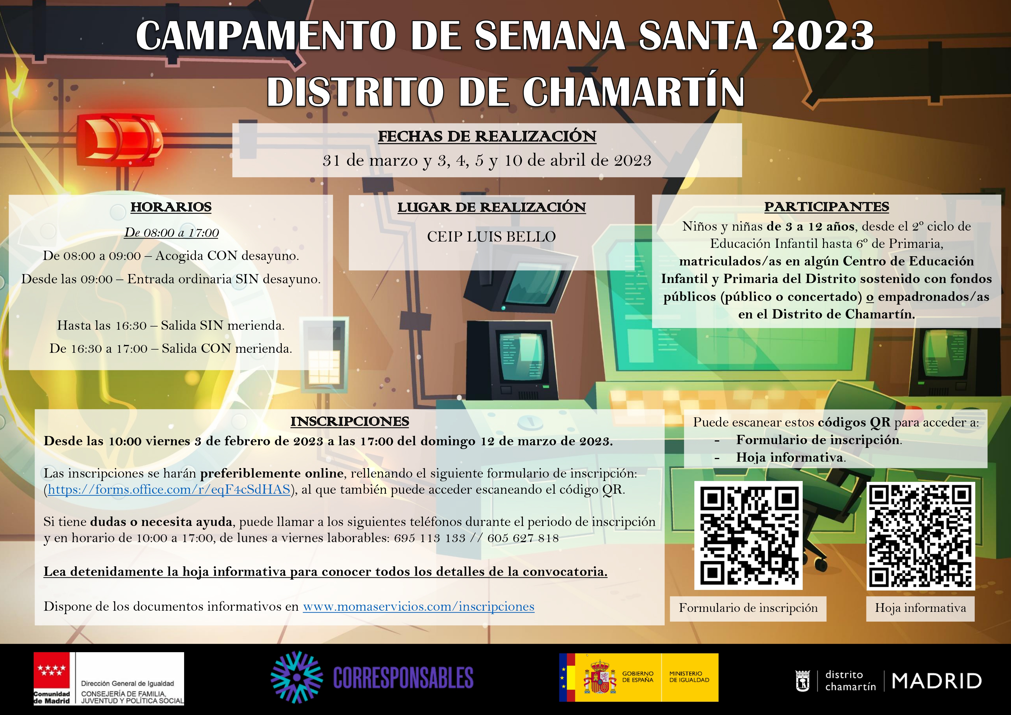 Desde la Junta del Distrito de Chamartín se informa de la actividad: Campamento de Semana Santa 2023