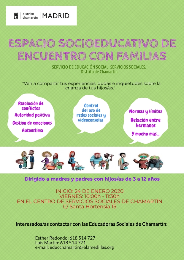 Desde el equipo de Educación Social de Servicios Sociales del distrito de Chamartín se han puesto en contacto con nosotras para informarnos de que el próximo viernes 24 de enero de 2020 comenzará
