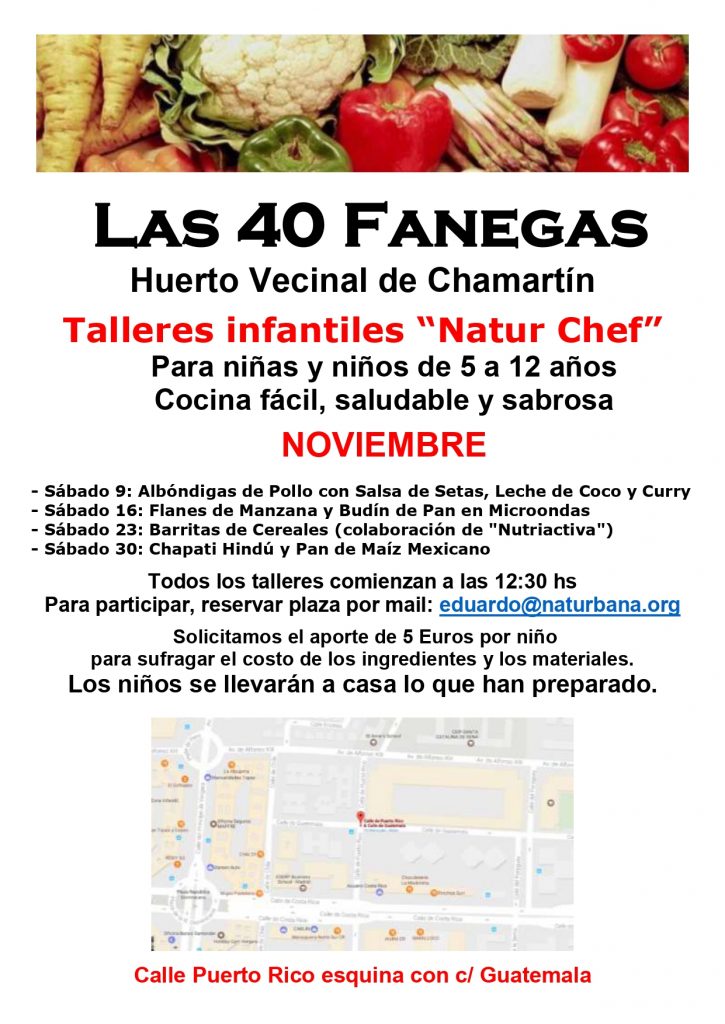 Este sábado empiezan los talleres infantiles de noviembre que la Asociación Naturbana realiza en el Huerto Vecinal de Chamartín, situado en la calle Puerto Rico esquina con calle Guatemala.